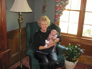 We are working through some fussy times though. Usually everynight between 6-9 we have a couple of fussy hours. They are getting better though. She is a great sleeper at night. She goes down between 9-10 and sleeps in 4 to 4 1/2 intervals at a time. Lee says she likes to sleep like her mamma!